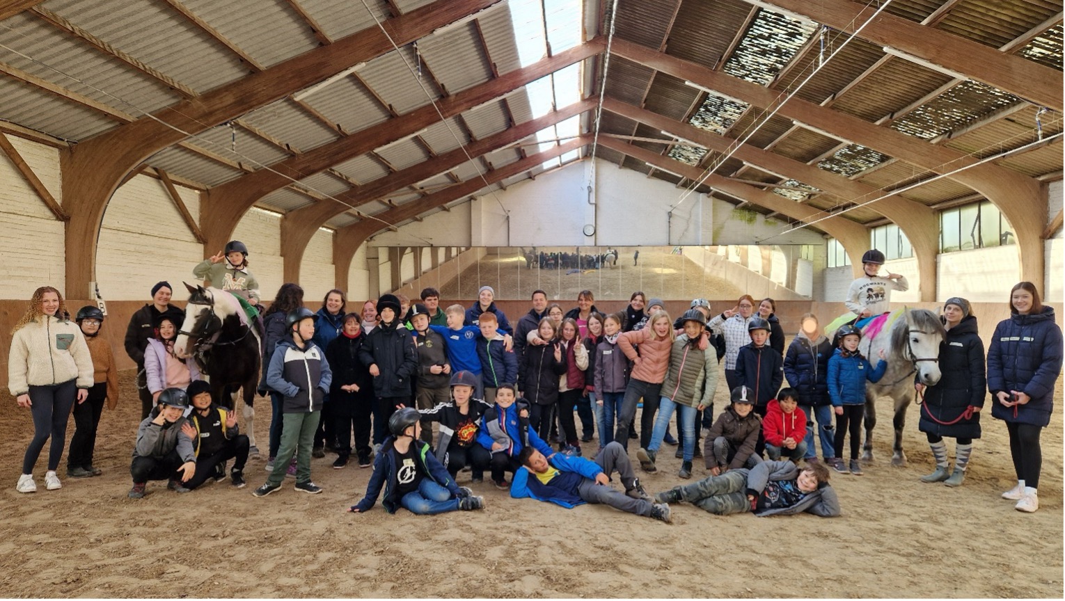 Am Ende des Jahres durften wir – die Klasse M2 – noch etwas ganz Tolles erleben! Wir waren Teil eines inklusiven Pferdeprojekts, welches durch eine Förderung des Ministeriums für Arbeit, Gesundheit und Soziales des Landes NRW ermöglicht und durch den Verein „TheraKids e.V.“ auf dem Rosenhof in Bergheim-Glessen durchgeführt wurde.