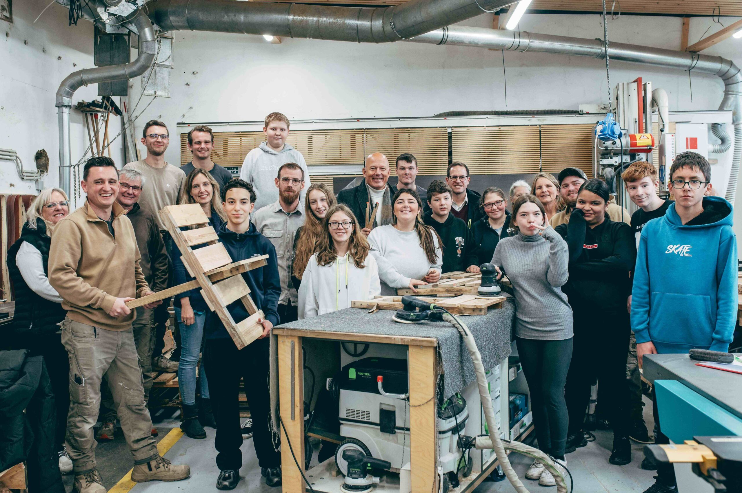 Am Nachmittag öffneten wir unsere Türen für ein großes Publikum: Eltern der Oberstufe, die Schreinerei Werres, die Berufspraxisstufen und viele weitere Interessierte folgten unserer Einladung. Hier präsentierten wir die selbst gebauten Möbelstücke, die in den vergangenen zwei Wochen entstanden waren.