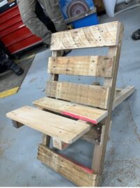Während des Besuchs erklärten wir ausführlich, wie unsere Möbel entstehen, welche Materialien wir verwenden und welche Schritte notwendig sind, um aus Paletten hochwertige Möbelstücke zu bauen. Besonders betonten wir, wie viel Teamarbeit, Kreativität und handwerkliches Geschick in jedem einzelnen Produkt steckt.