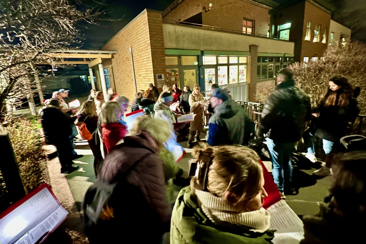 Besonders das Lied „In der Weihnachtsbäckerei“ wurde von allen begeistert gesungen und nach ausgiebigem Singen ging es zur Stärkung und zu gemeinsamen Gesprächen in die Klasse. Es gab selbstgebackene Kekse und leckeren Frucht-Punsch. Zum Abschied wurden viele gute Wünsche zum bevorstehenden Fest gewünscht.