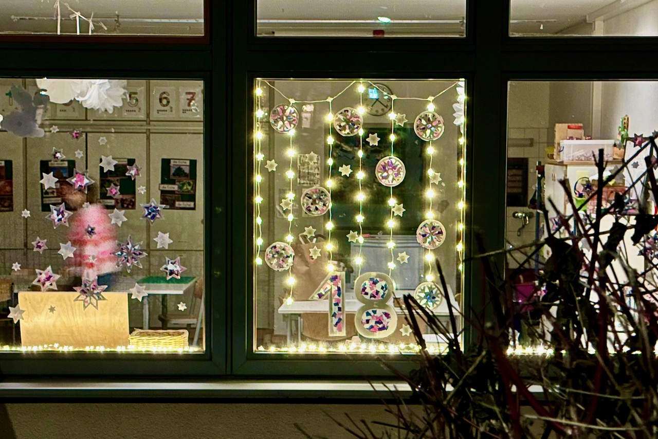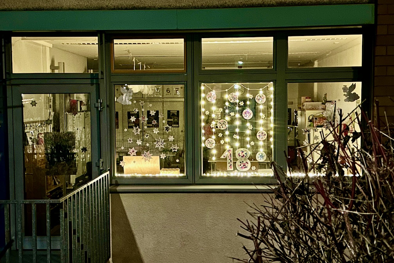 In der letzten Woche vor den Ferien hatte dann die Klasse Mittelstufen 2 übernommen, die Aktion „Adventsfenster öffnen“ zu gestalten. Diese Aktion führen wir auch schon viele Jahre mit der Dorfgemeinschaft aus Thorr durch. An jedem Tag im Advent wird dazu irgendwo in Thorr ein schön geschmücktes Fenster wie beim Adventskalender „geöffnet“ und gemeinsam werden Advents- und Weihnachtslieder gesungen.