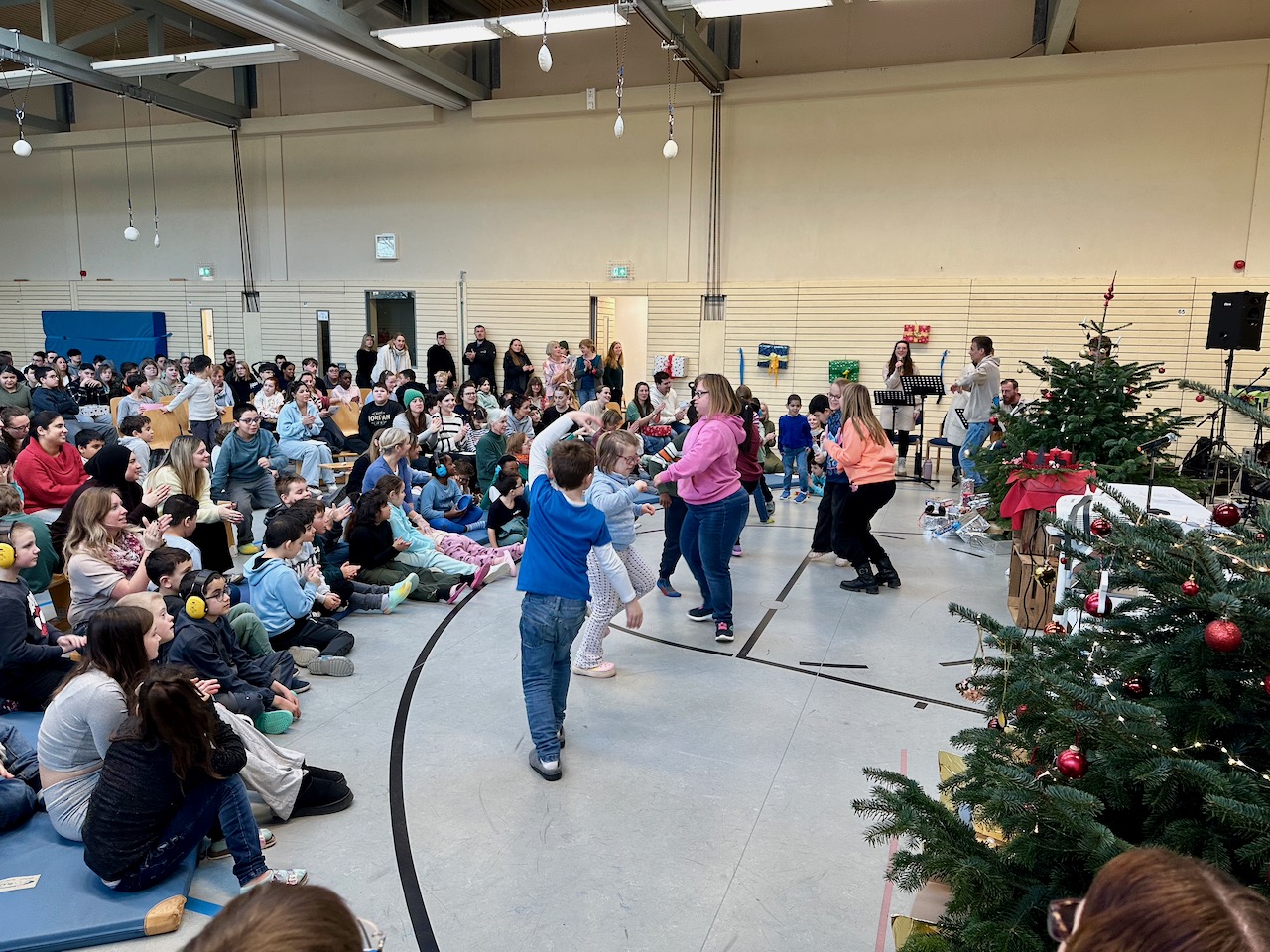 Als Highlight hatte jede Klasse für eine andere Klasse ein Geschenk vorbereitet. Dies wurde in der Andacht dann an die jeweilige Klasse verteilt. Alle waren begeistert, solch schöne Geschenke zu erhalten und zum Abschluss wurde zur Live-Musik ausgiebig getanzt.