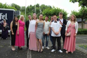 Auch in diesem Jahr fand im Bürgerhaus Neu-Etzweiler wieder der traditionelle und festliche Abschlussball der Schule Zum Römerturm statt. Nachdem sich die Schulgemeinschaft bereits am Donnerstagvormittag, dem 20. Juni, mit einer Andacht und einer abwechslungsreichen Abschiedsfeier von den jungen Absolventen verabschiedet hatte, stieg am darauffolgenden Freitagabend dann endlich der große Abschlussball.